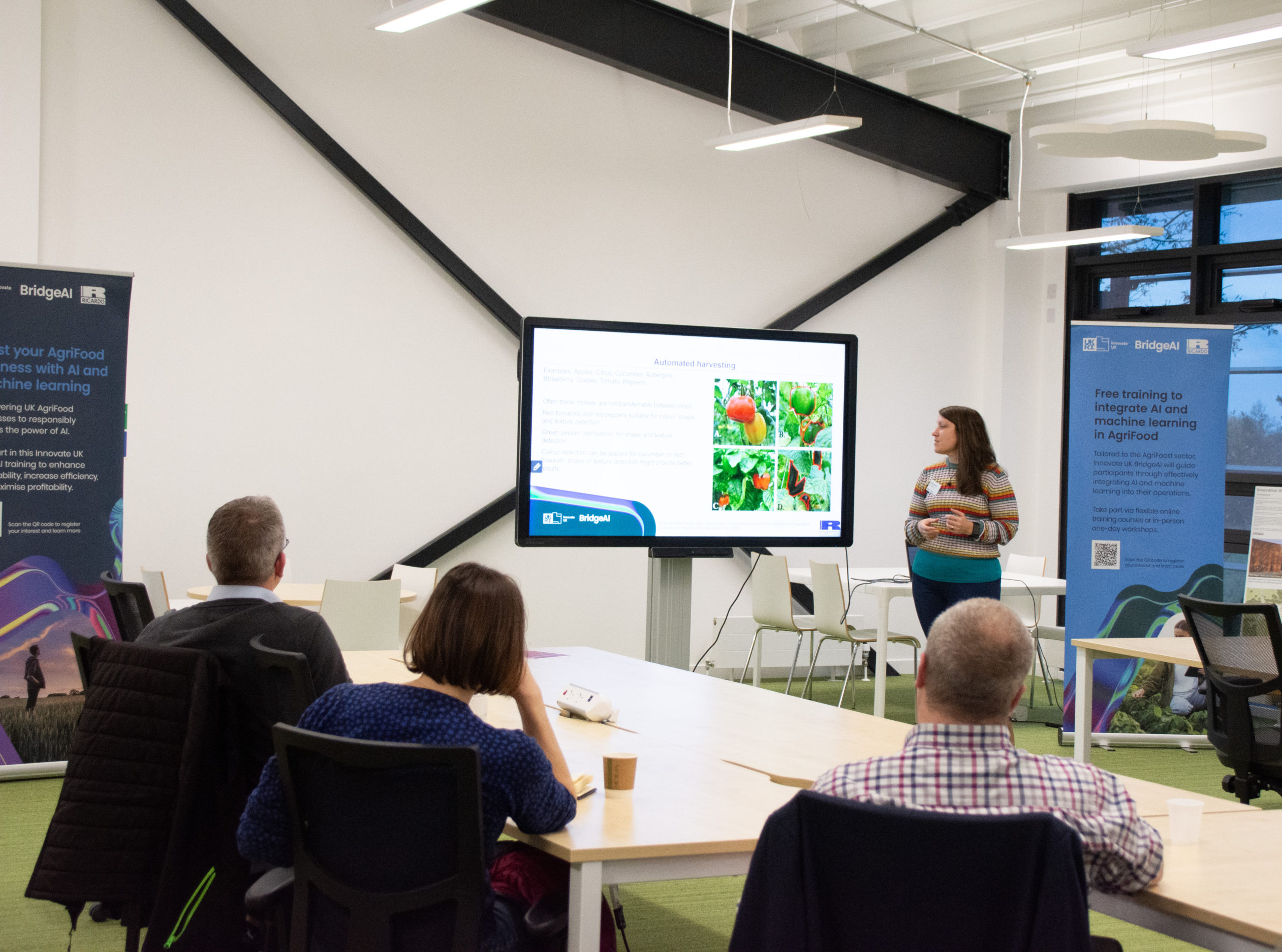 Funded by Innovate UK, over the course of an afternoon, delegates discovered more about how AI and ML can be deployed to support those working within the agri-food sector, with Principal Consultant for Agriculture and Land, Felicity Crotty, and James Lewis, Senior Data Scientist, from Ricardo.